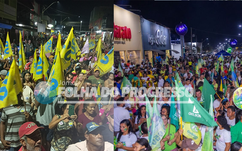 Duas candidaturas disputam a prefeitura, ambas realizaram comício na noite de quinta-feira,3 de outubro em Novo Progresso. O prefeito Gelson DILL busca a reeleição com o número 15 do partido MDB e tem candidatura deferida pelo TRE e TSE. O ex-prefeito Juscelino Alves Rodrigues também teve o registro deferido pelo TRE-TSE e disputa a eleição com o número 20 do partido PODMEOS.