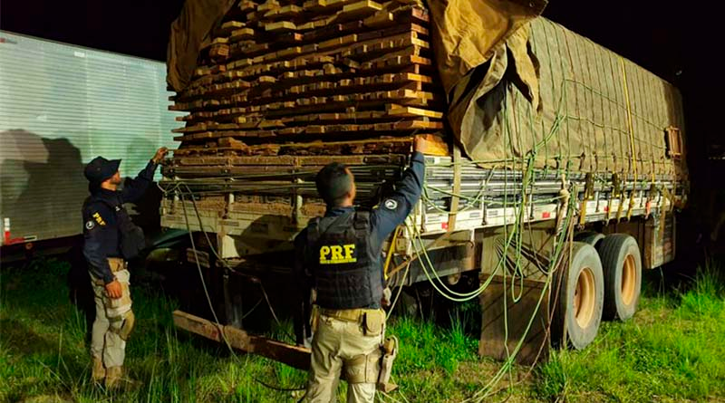 Em Altamira, PRF realiza apreensão de carga ilegal de madeira