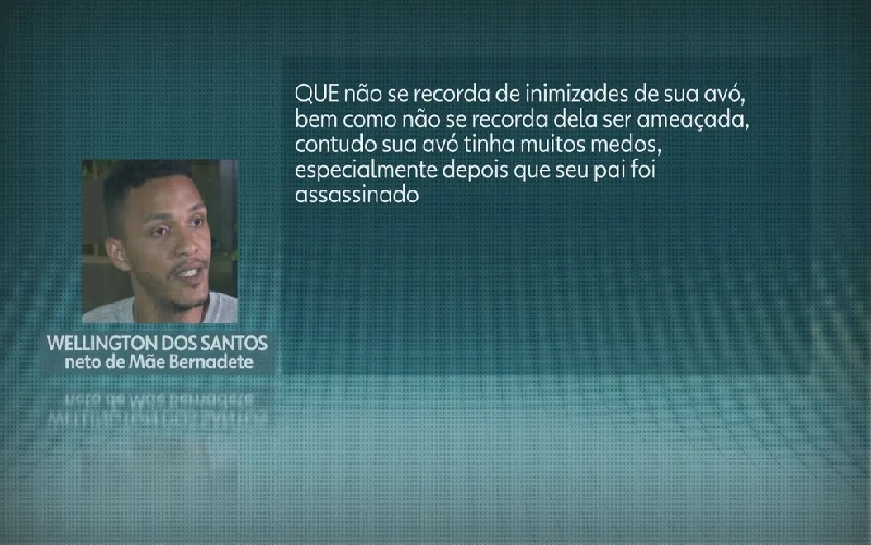 Em depoimento, netos de Mãe Bernadete relatam ações dos assassinos e comentam sobre inimizades da avó: ‘Tinha muitos medos’