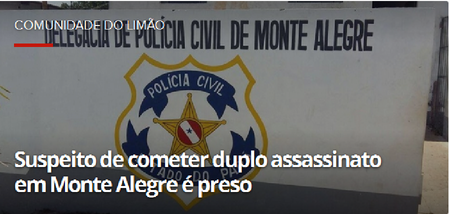 Um homem de 25 anos foi preso na madrugada desta terça-feira (3) na PA-423 em Monte Alegre, no oeste do Pará, quando seguia em direção ao município. A prisão ocorreu próximo ao lixão. De acordo com a Polícia Civil (PC), ele é suspeito de ter matado Domingos Ferreira Soares, de 41 anos e Francisco Soares de Lima, 50 anos, com facadas e tiros. O crime aconteceu no dia 1º de janeiro na comunidade Novo Brasil, distante aproximadamente 70km do município.