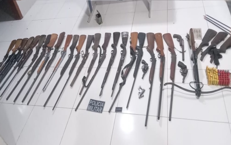 Em Novo Progresso, PM prende vasto armamento com suposto armeiro, em ocorrência de briga doméstica