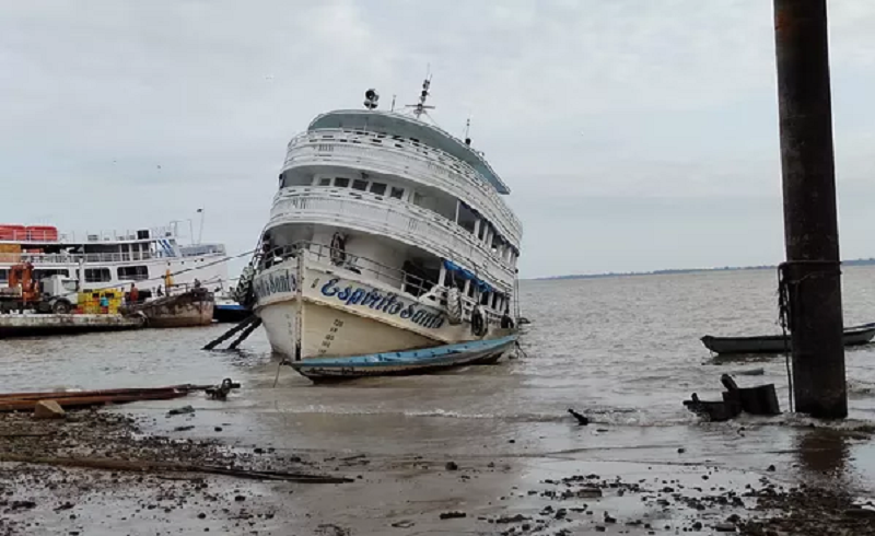 Tripulantes da embarcação acreditam que o casco foi danificado por uma estrutura metálica ou de concreto da obra do Terminal Hidroviário de Santarém, e informaram que outras embarcações já se acidentaram no mesmo local que não está sinalizado.