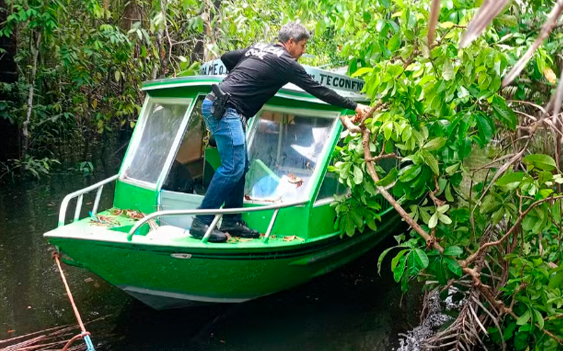 Policiais civis encontraram a lancha abandonada no furo Macacaá (que é uma espécie de igarapé ), afluente do Rio Pará, que fica localizado no município de Limoeiro do Ajuru, também no nordeste paraense.