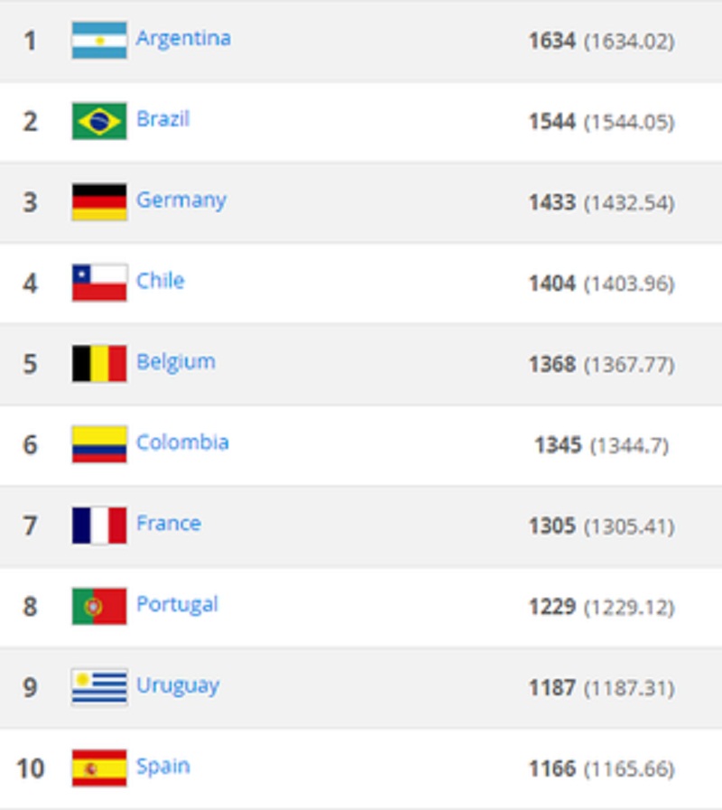 A vitória valeria 582 pontos e o empate 194 pontos. Hoje, a Argentina, primeira do raking, está com 90 pontos apenas na frente do Brasil – veja o ranking em destaque. Os “hermanos” somam 1634 pontos e o Brasil, 1544. O compromisso do Brasil com a Colômbia é o primeiro do ano que conta para o ranking da Fifa.