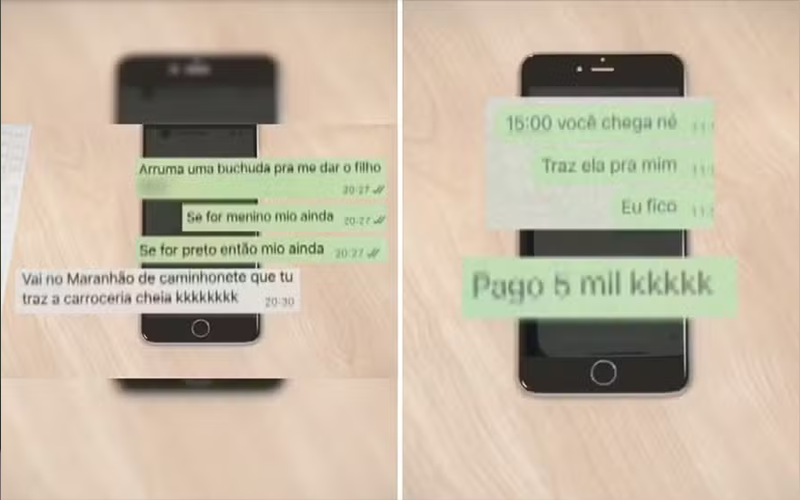 “Arruma uma ‘buchuda’ para me dar o filho. Se for menino, melhor ainda. Se for preto então, melhor ainda”, dizia a empresária na mensagem. A funcionária ainda respondeu: “Vai no Maranhão com uma caminhonete que tu traz a carroceria cheia”.