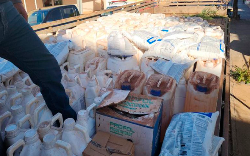 Durante a abordagem, a polícia encontrou não apenas os óleos lubrificantes, mas também defensivos agrícolas que, segundo os suspeitos, eram desviados de grandes fazendas da região.
