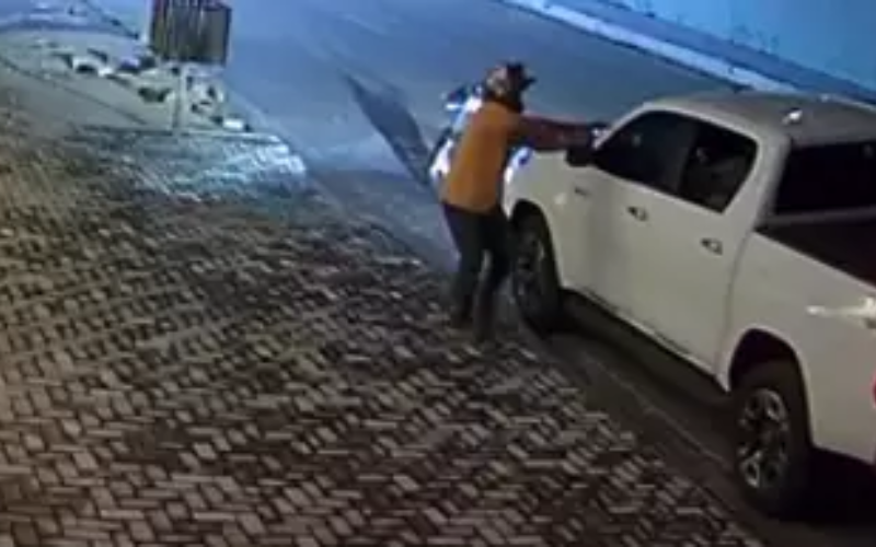 As imagens de câmeras de segurança mostram quando a vítima sai do estabelecimento, por volta das 19h57. Ela e um segundo homem vão em direção a uma caminhonete que está estacionada em frente ao escritório, para ir embora do local. Após o empresário entrar no lugar do motorista e o outro homem no banco do carona, o atirador chega de moto e para em frente ao automóvel, bloqueando a passagem das vítimas.