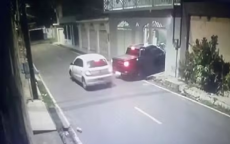 Nas imagens, é possível ver quando Ailton chega à sua residência de carro quando um veículo branco se aproxima. Dois homens descem armados e o abordam, exigindo que ele abra a porta do imóvel.
