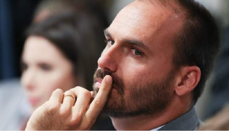 A declaração foi dada enquanto o deputado e filho do presidente Jair Bolsonaro (sem partido) comentava a viagem que fez para Israel junto a uma comitiva brasileira para conhecer o spray contra a Covid-19 que está em fase de testes iniciais no país do Oriente Médio.