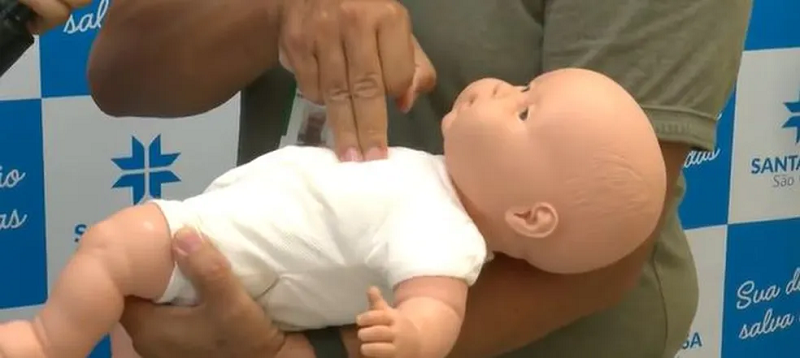 O Ministério da Saúde orienta que devem ser feitos movimentos de compressão para dentro e para cima (como uma letra “J”), até que a vítima elimine o corpo estranho.