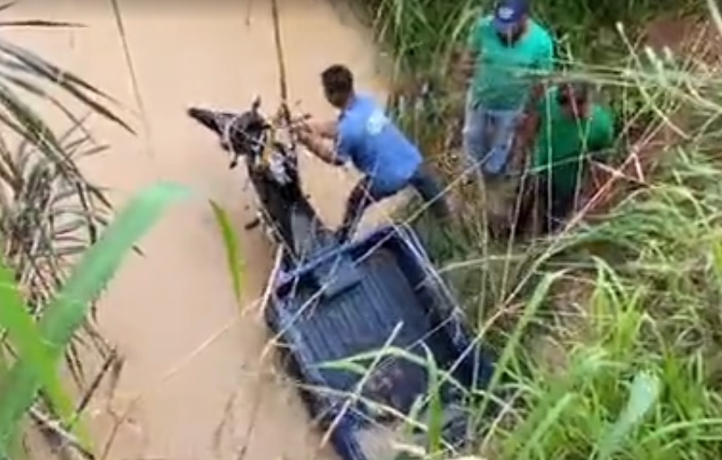 Um entregador da PRASMATEC , materias para contrução, caiu com motocicleta dentro da vala do córrego da avenida Jamanxim na ponte. (Fotos: Reprodução)