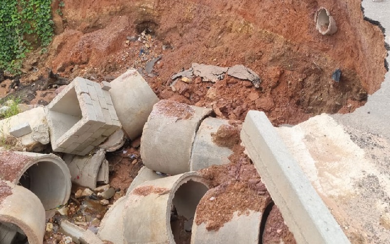 Enxurrada rompe galeria e abre cratera em avenida de Novo Progresso