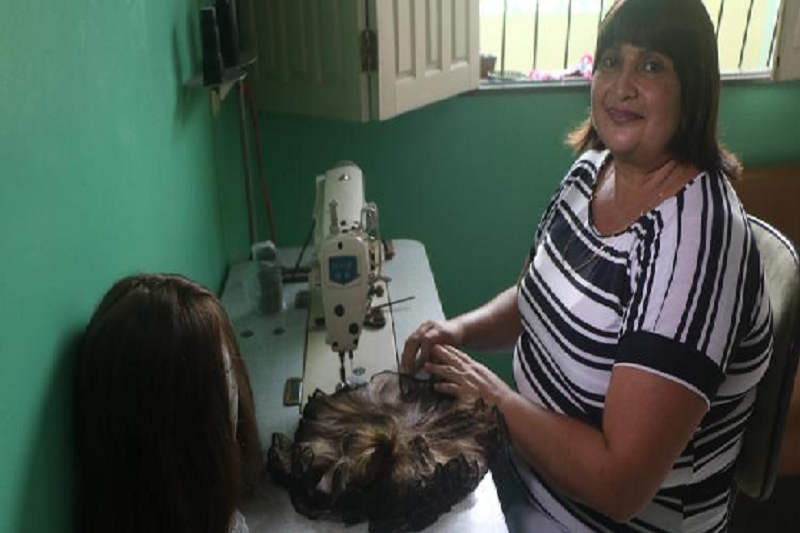 Regina Formigosa de Lima produz perucas para vítimas de escalpamento (Fotos: Thiago Gomes / O Liberal)