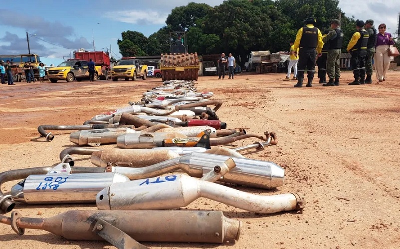 Aproximadamente 150 escapamentos adulterados de motocicletas foram destruídos na manhã desta quinta-feira (11), no pátio da Secretaria Municipal de Infraestrutura (Seminfra), em Santarém, oeste Pará. Os motociclistas que circulam com escapamentos adulterados estão sujeitos a remoção do veículo e pagamento de multa.