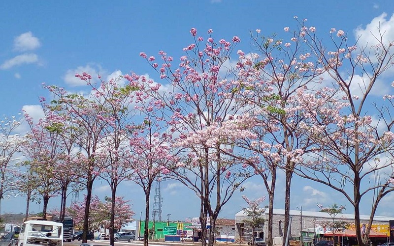 Rosas, azuis, amarelos e brancos, as árvores da espécie estão espalhadas pela Avenida Orival Prazeres e Dr Isaias Antunes em Novo Progresso.