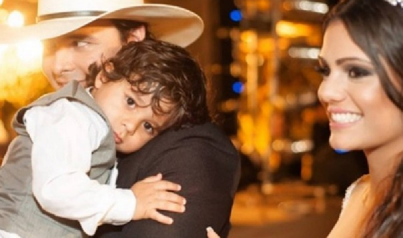 Na foto, ela aparece no dia do seu casamento com o cantor, em que o filho foi um dos pajens. Na legenda, apenas um coração partido.