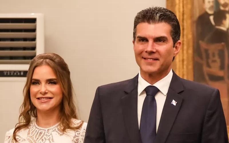A primeira-dama do Pará, Daniela Barbalho, com o governador Helder Barbalho, na cerimônia de posse – (Imagem: 1º.jan.2023 – Rodrigo Pinheiro/Agência Pará)