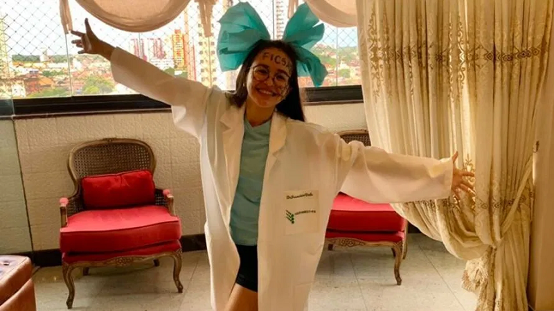 Sofia comemorando aprovação em medicina na na Faculdade Albert Einstein | Foto:Reprodução