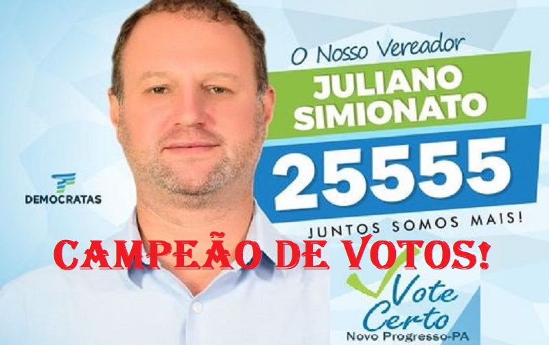 Campeão de Votos em 2020 – O ex-secretário municipal de Meio Ambiente (Semma), Juliano Simionato do Democratas, é o vereador mais votado entre os 11 eleitos para a Câmara Municipal de Novo Progresso. Com 100% das urnas apuradas, o político conquistou 491 votos.