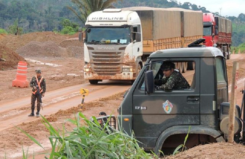 Exército Brasileiro realiza manutenção de trafegabilidade e transitabilidade na BR-163, no Pará.