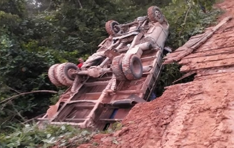 Na estrada existe obstáculos, escorregadia e com pontes improvisadas, o motorista da camioneta pode ter perdido o controle e tombou. O veiculo ficou com as rodas pra cima e a carga caiu dentro do córrego, a camionete tombou antes de passar na ponte, a pista tem sinais de estar molhada, o veículo faz fretes para os garimpos, o motorista foi identificado como Baiano, ninguém saiu ferido.