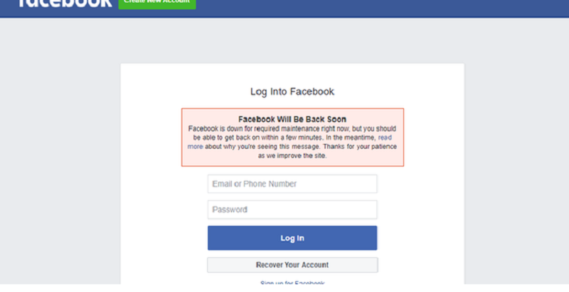 Quem tenta fazer novo login, encontra a mensagem falando sobre uma manutenção Foto:(Reprodução / Facebook)Falhas estão sendo relatadas por todo o mundo. Bug afeta o Brasil desde 13h.