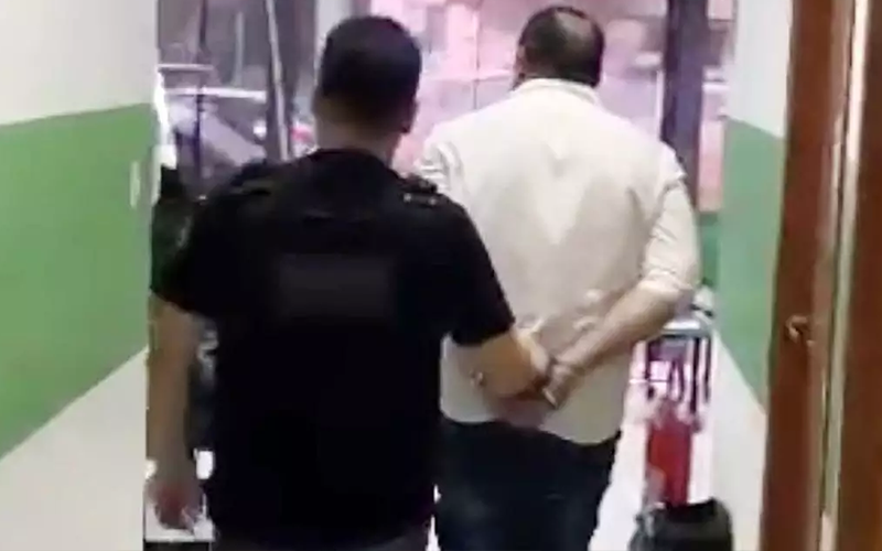Suspeito de ser falso oftalmologista sendo encaminhado para a Delegacia. (Foto: Polícia Civil)