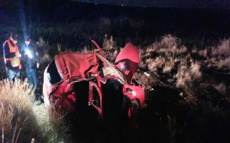 O carro que levava a família do médico Charles Serednicki após o capotamento. Foto: Mendonza Post