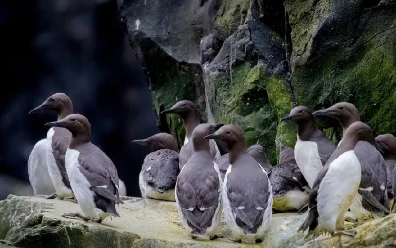 Os araus-comuns, aves marinhas que vivem em colônias densas e barulhentas nas falésias costeiras, praticamente desapareceram de seus locais habituais durante o período.