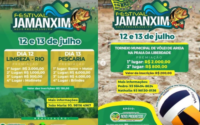 Foto: Reprodução | Nos dias 12 e 13 de julho de 2025, a Praia da Liberdade, em Novo Progresso (PA), será palco de um dos eventos mais aguardados do ano: o Festival Jamanxim. Com uma programação voltada para o lazer, o esporte e a preservação ambiental, o festival promete reunir moradores, visitantes e competidores em dois dias de muita diversão.