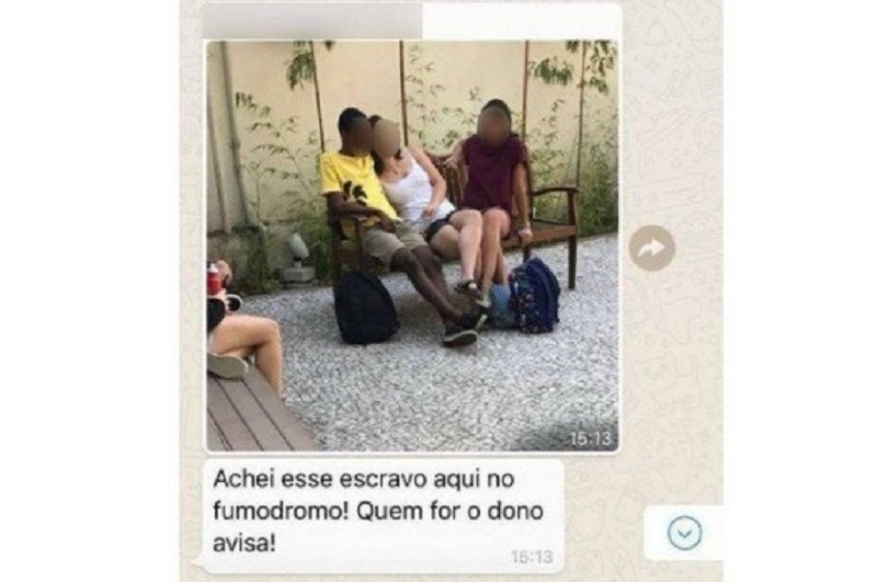 Um estudante de Administração da Fundação Getulio Vargas (FGV) de São Paulo foi suspenso por três meses após ser denunciado por racismo. O aluno enviou uma mensagem para um grupo de WhatsApp com a foto de outro estudante, negro, acompanhada da mensagem: “Achei esse escravo no fumódromo! Quem for o dono avisa!”. O aluno ofendido prestou queixa contra o autor da mensagem no 4º Distrito Policial, na capital do estado, e publicou um texto de repúdio em um grupo de estudantes da FGV no Facebook.