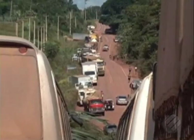 O bloqueio realizado no quilômetro 1.102 da rodovia BR-230, nas proximidades de Itaituba, no sudoeste do Pará, resulta na tarde desta quinta-feira (27) em uma fila de caminhões que chega quase à cidade de Trairão, há cerca de 80km do local.