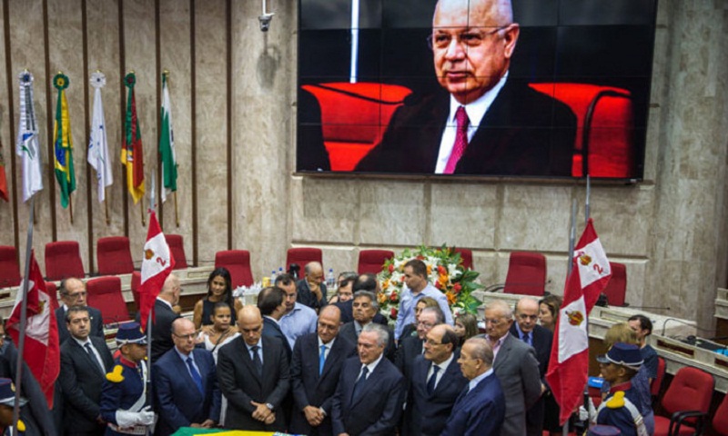 O filho do ministro disse ainda que se sente o estômago embrulhar ao lembrar da presença do “cortejo dos delatados” no velório do seu pai. Entre as figuras envolvidas com a Lava-Jato que estiveram no velório estavam o presidente Michel Temer, o ministro Eliseu Padilha (Casa Civil) e o então ministro José Serra, na época no comando da pasta de Relações Exteriores, todos delatados na Lava-Jato.