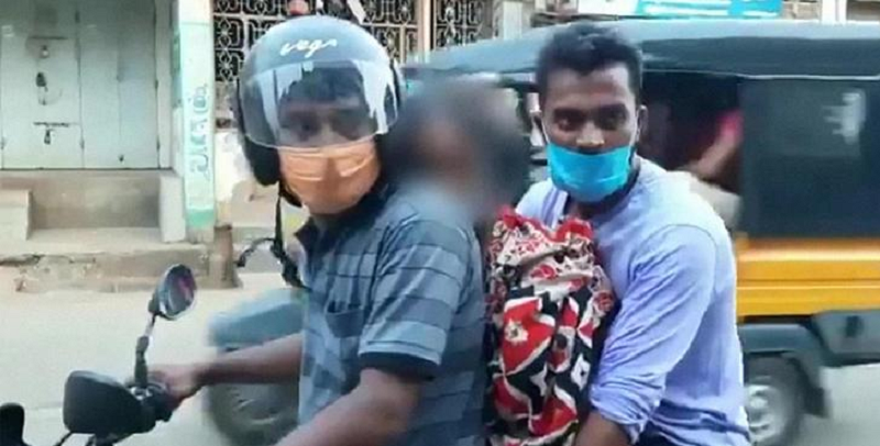 Filhos apertam cadáver da mãe entre eles em moto para levá-la ao crematório