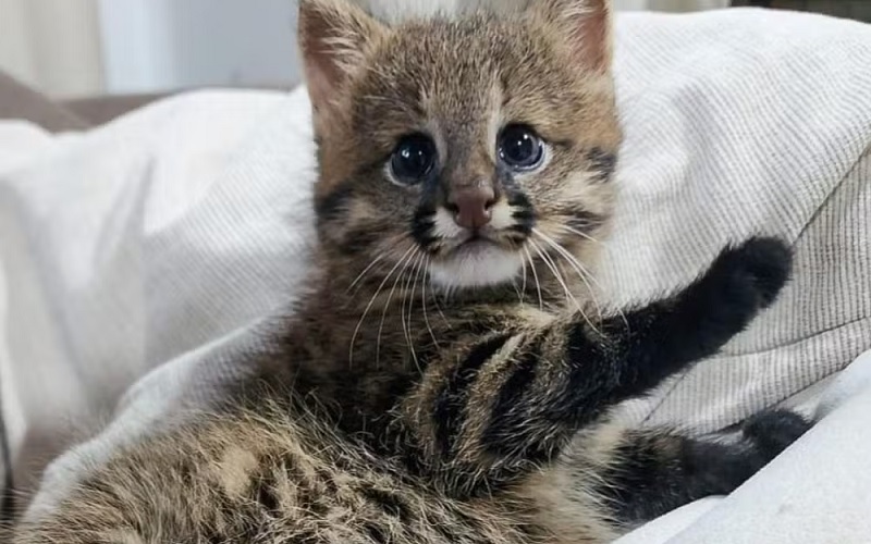 Filhote de gato selvagem é resgatado em lavoura e recebe tratamento em clínica veterinária em MT