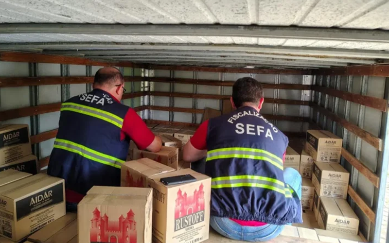Foto: Reprodução | Apreensão de carga ilegal de vodca e álcool em Dom Eliseu, Pará: fiscais da Sefa atuam no combate à sonegação fiscal.