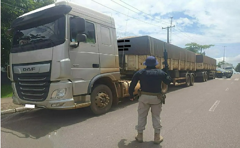 De acordo com a corporação, um caminhão trator foi abordado no km 270 da rodovia. Nele, foram encontrados o semirreboque e o reboque carregados de minério do tipo manganês.