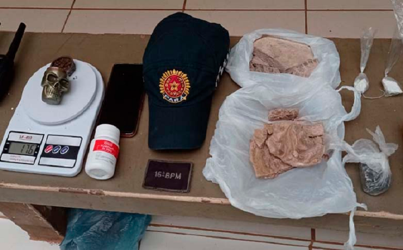 Com a constatação do mandado de prisão em aberto e a apreensão das drogas o suspeito foi encaminhado para a delegacia de Polícia Civil do município, responsável pelo procedimento administrativo.