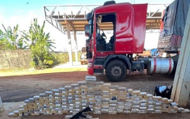 Ainda na vistoria, a força-tarefa apreendeu munições, carregadores e um fuzil calibre 5.56 mm escondidos no compartimento do veículo. O caminhão usado no transporte da droga também foi apreendido.