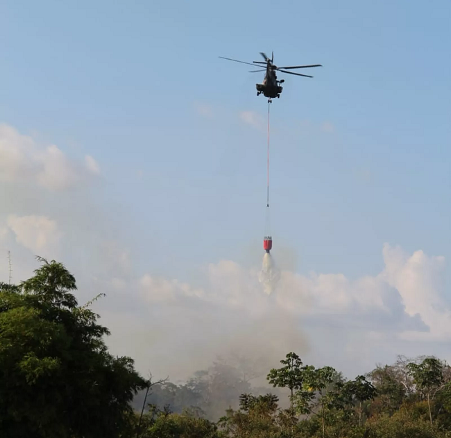 Forças Armadas despejam 8 mil litros de água em foco de incêndio em Altamira, no PA
