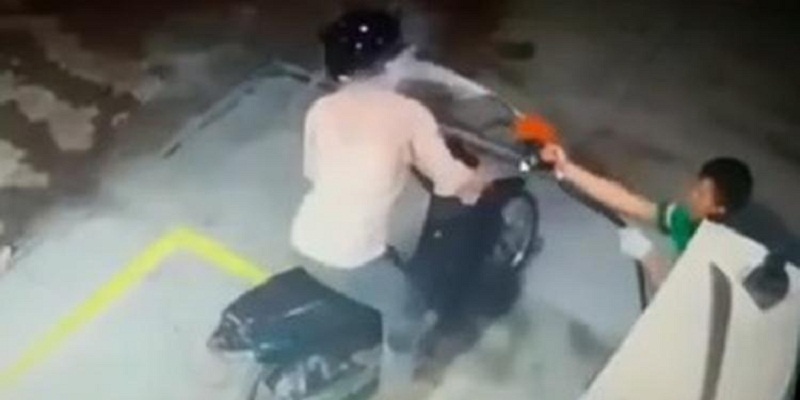 Frentista dispara jato de gasolina em ladrão durante assalto a posto
