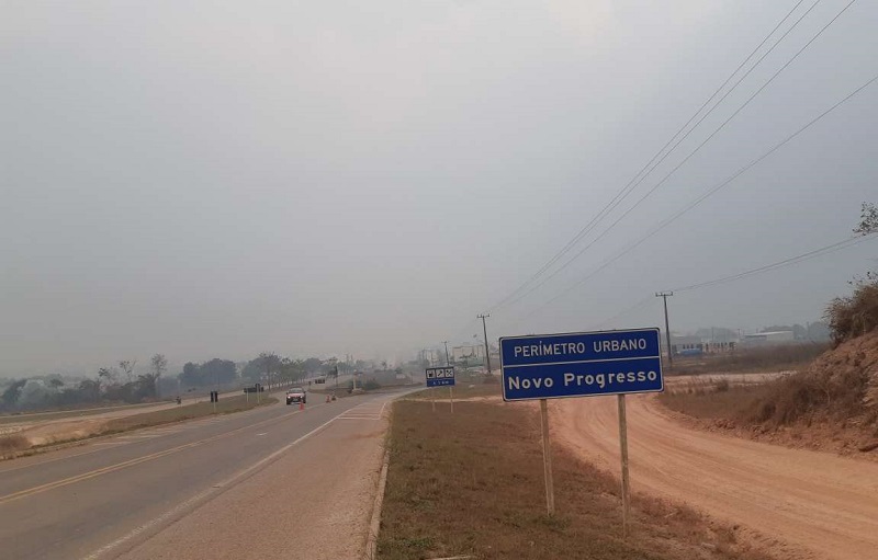 Fumaça toma conta da cidade e aviões tem dificuldade para voar na região de Novo Progresso