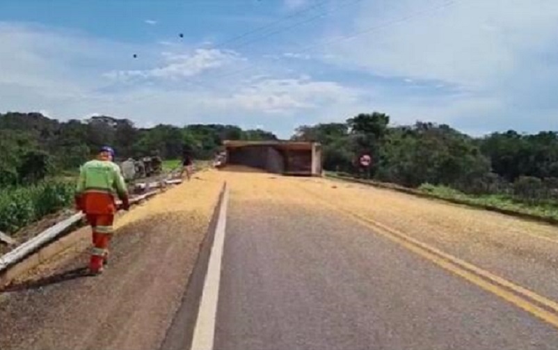 Segundo relatos de testemunhas, a carreta trafegava sentido Cuiabá (MT) – Santarém (PA), em velocidade acima do permitido, quando perdeu o controle da direção, atingiu dois veículos e duas pessoas que trabalhavam na manutenção da pista, e em seguida o segundo reboque tombou nas faixas de rolamento, espalhando a carga de milho pela pista.