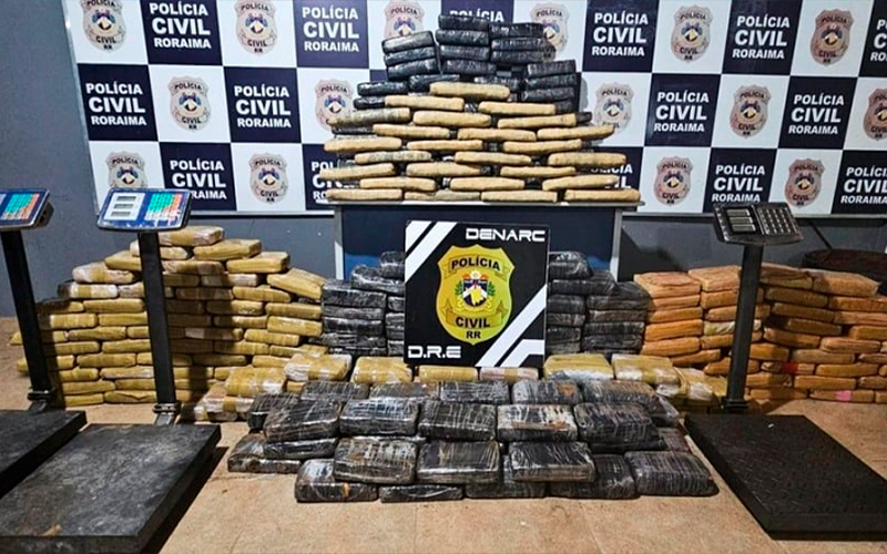 A Polícia Civil prendeu em flagrante dois garimpeiros, de 31 e 34 anos, com 357 quilos de skunk, a droga conhecida como supermaconha. Os suspeitos e os materiais encontrados nessa terça-feira (19), na vila Samaúma, em Mucajaí, Sul de Roraima, foram levados para a Delegacia de Repressão ao Entorpecente (DRE), em Boa Vista.
