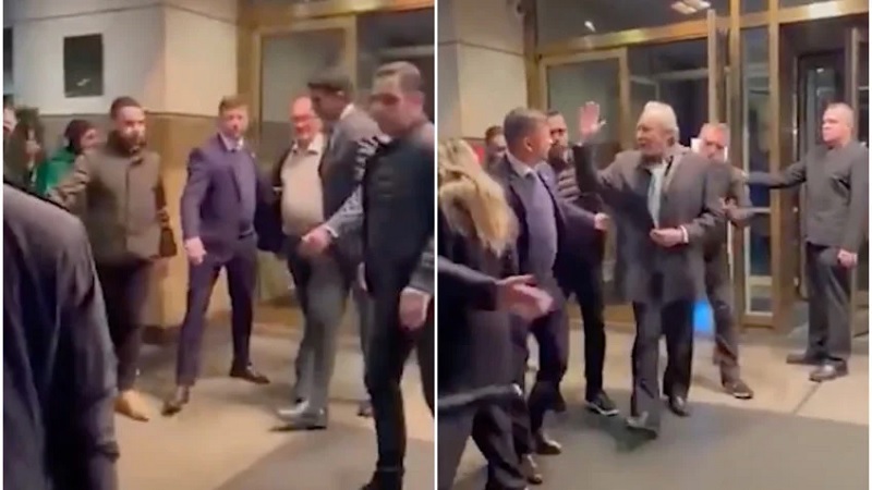 Os xingamentos se repetem, agora tendo Lewandowski, 74 anos, como alvo. Ao sair do hotel, o ministro se vira para as pessoas que estão aguardando na porta, acena para eles e sorri. O vídeo mostra que muitos dos que estão ali esperando vestem roupas nas cores verde e amarelo, além de bandeiras do Brasil.