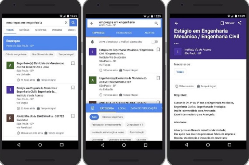 Para ativar o recurso, basta digitar, por exemplo, “trabalhos em restaurantes”, “empregos em São Paulo” ou mesmo “trabalhos próximo a mim” na caixa de pesquisa do Google;