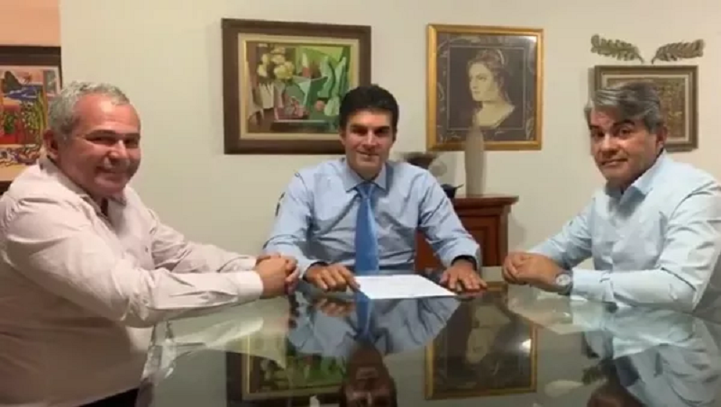 Governador Helder Barbalho, prefeito de Santarém Nélio Aguiar e David dos Santos Caldas assinaram ordem de serviço do HMI — (Foto: Reprodução/Redes Sociais)