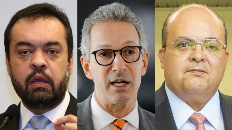 Os governadores Cláudio Castro (esq.), Romeu Zema (centro) e Ibaneis Rocha (dir.) concorrem à reeleição no Rio de Janeiro, Minas Gerais e Distrito Federal, respectivamente – (Foto:Reprodução).