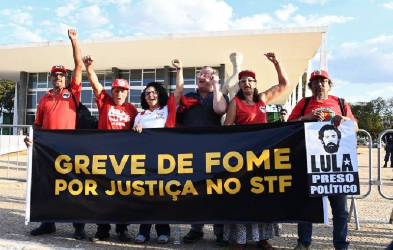 Um grupo de seis pessoas começou na tarde desta terça-feira, 31, uma greve de fome pela libertação do ex-presidente Luiz Inácio Lula da Silva, condenado em um processo da Operação Lava Jato e preso. O ato que marcou o início da greve durou 50 minutos e teve início às 16h, em frente ao Supremo Tribunal Federal (STF), onde, segundo o PT, os militantes protocolaram um manifesto anunciando a medida.