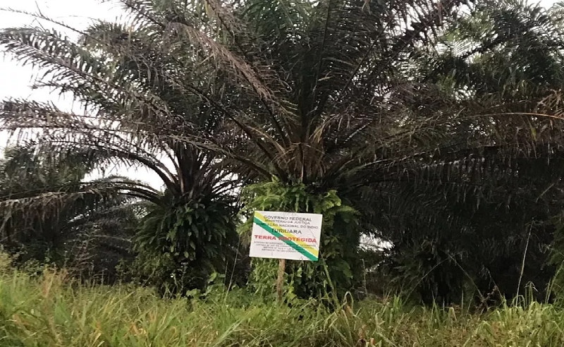 Plantação de dendê nos limites de demarcação de terra indígena no Pará. — Foto: Elielson Silva / Arquivo Pessoal